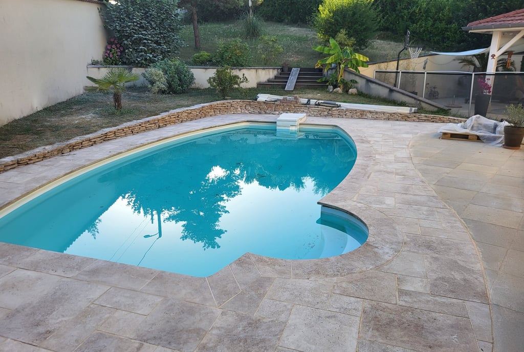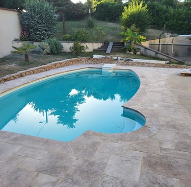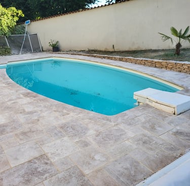 #RénovationPiscine #Travertin #Margelles #DallagePierreNaturelle #ChapeBéton #AménagementExtérieur #StMauricedeGourdans #EntrepriseLocale